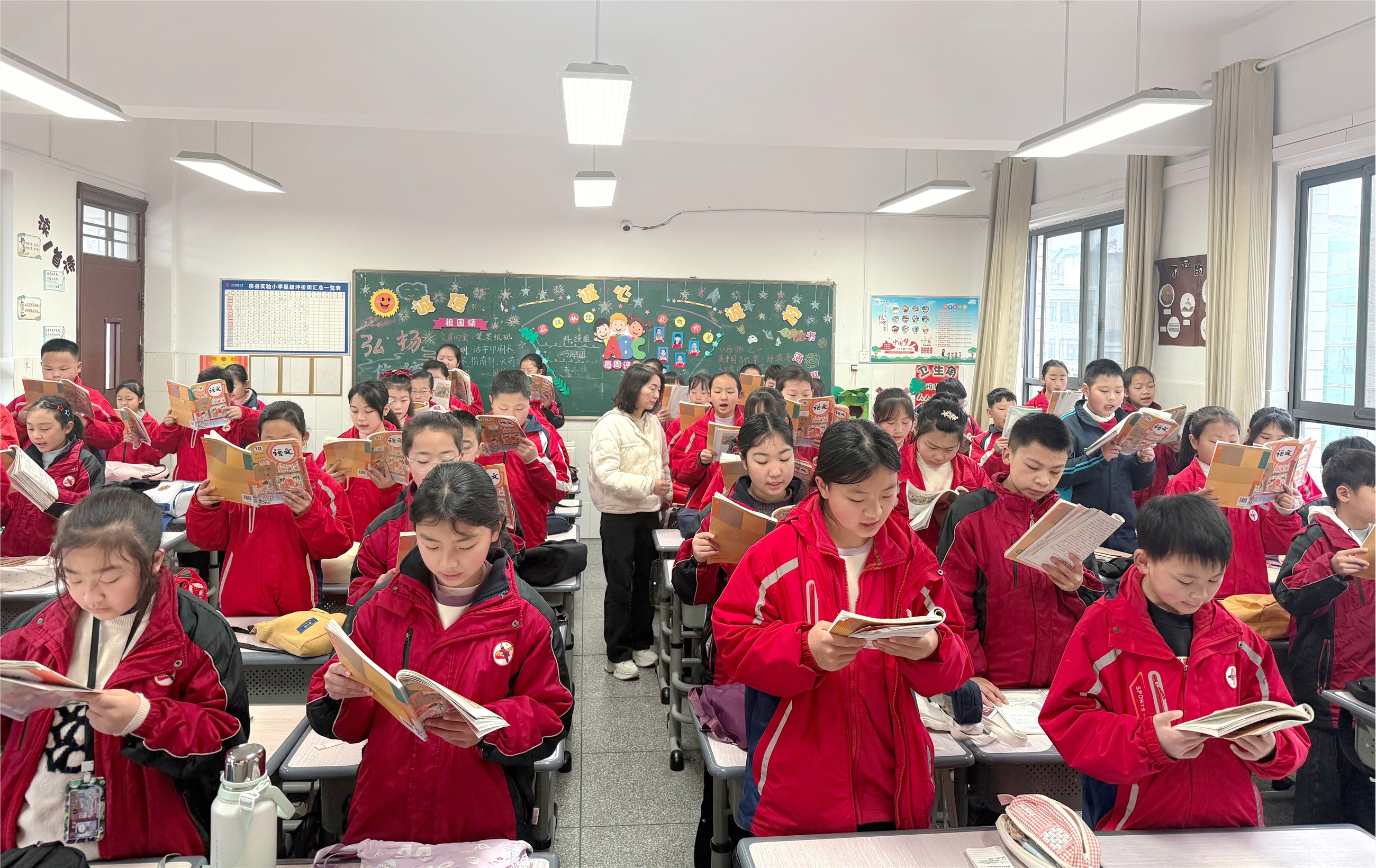 近日,实验小学学生利用早读时间诵读经典古诗文。近年来,该校持续深耕早读课堂,优化早读形式,让学生在诵读中感受文字之美、汲取知识力量,以饱满的精神状态投入到日常学习生活中,让书香满校园,让成长有力量。(胡雪丽 摄)
